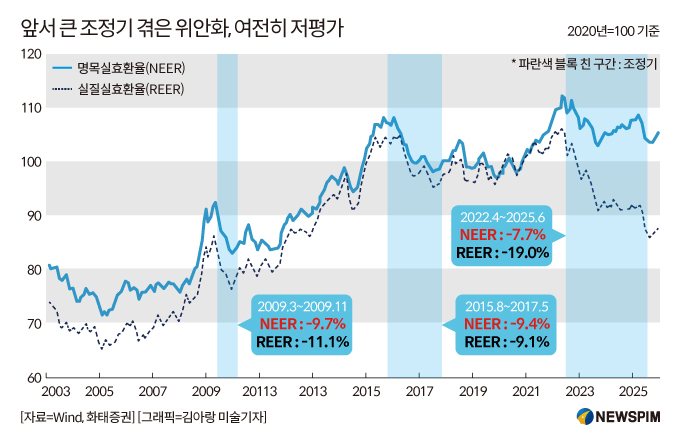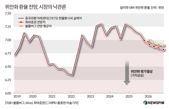 이를 바탕으로 그는 최근의 위안화 강세가 연중 내내 지속되기는 어렵고, 2026년에는 위안화의 달러 대비 환율에 일정한 절하(가치하락) 압력이 존재할 수 있다고 내다봤다.